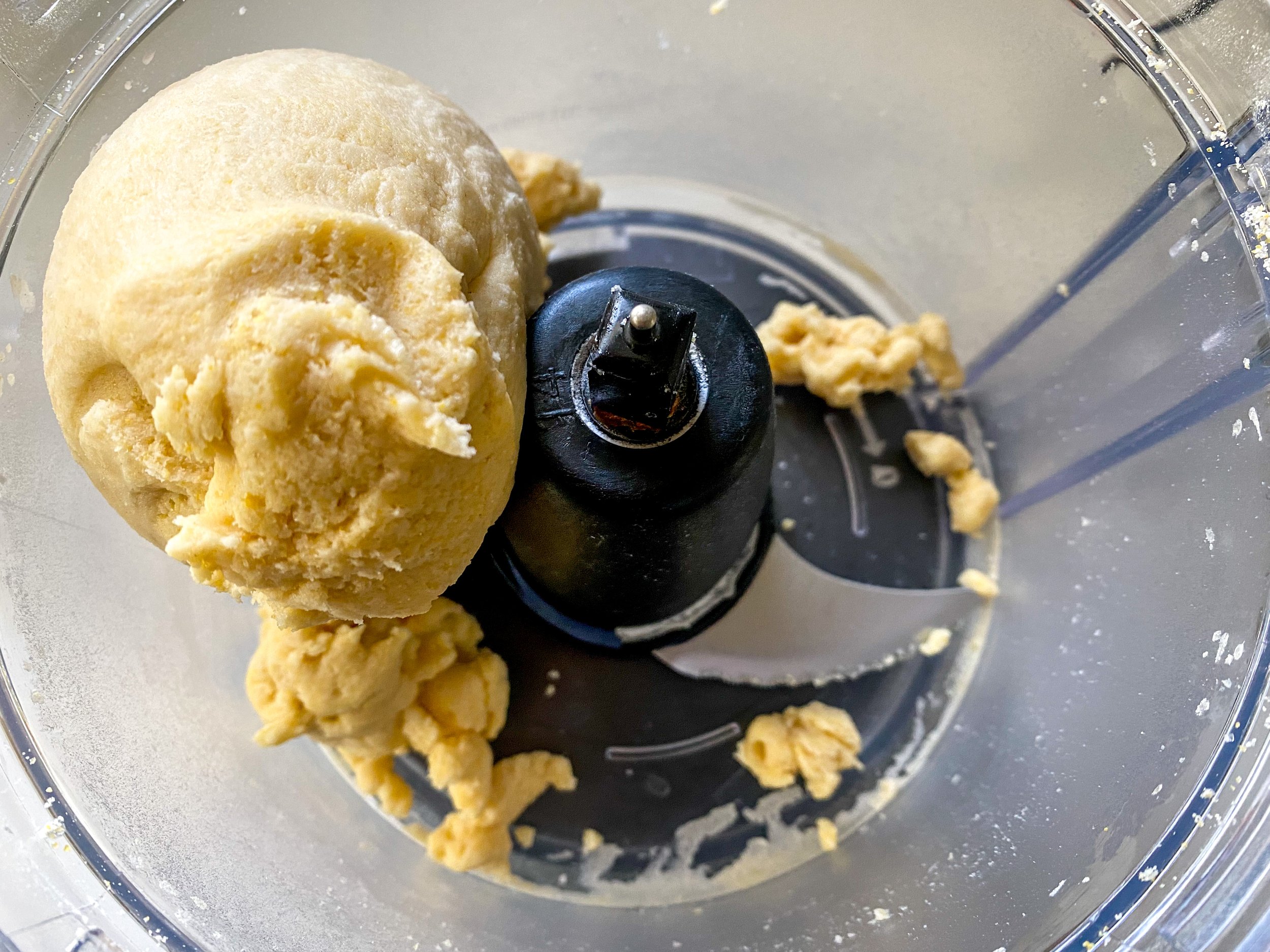- In a food processor, combine the flour, sugar, cornstarch, and salt. Pulse 2-3 times to combine. Add the cubed butter and pulse until the mixture resembles a coarse meal. With the food processor running, slowly stream buttermilk into the mixture. A dough will form. Remove dough from food processor and form into a ball. Wrap dough in saran wrap and refrigerate for 30-45 minutes.