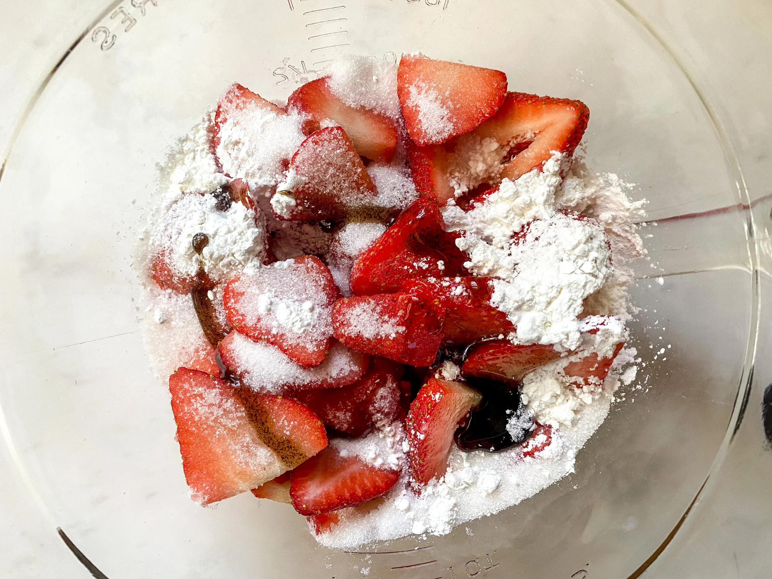 While the dough is chilling, combine slices strawberries, sugar, cornstarch, and vanilla. Mix thoroughly until the strawberries are well coated. Set aside.